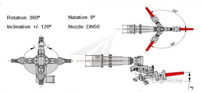 แขนยืดหดได้สองข้าง ยืดได้ถึง 12 เมตร และหมุนได้ 270 องศาในแนวนอน